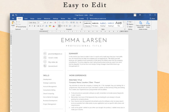 Resume template designed for printing and filling in Microsoft Word & Google Docs.